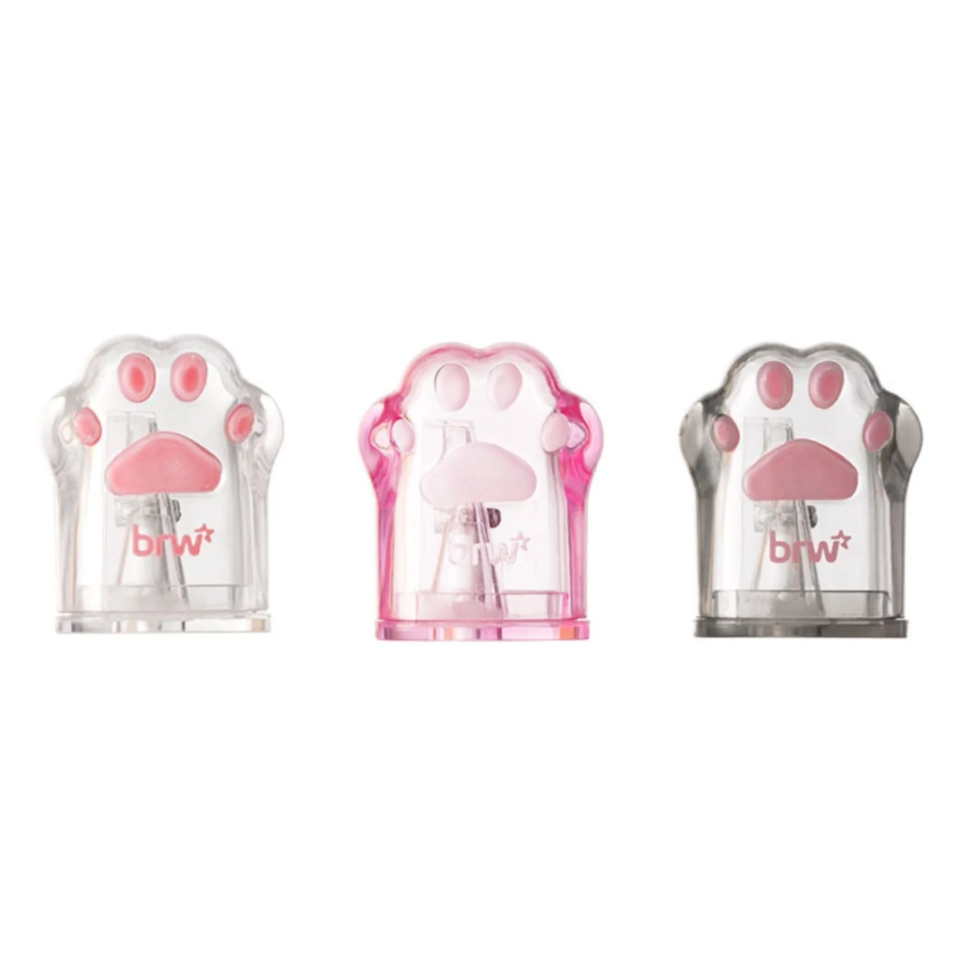 Apontador super Fofo, transparente no Formato de Patinha de Gato, nas cores rosa, transparente e Preto.
