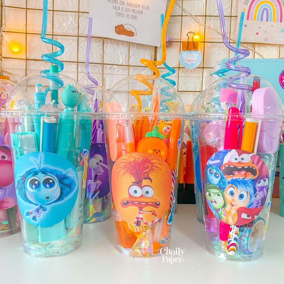 ESCOLHA SUA EMOÇÃO FAVORITA: Montamos seu copo personalizado com as cores, adesivos e itens da emoção escolhida!