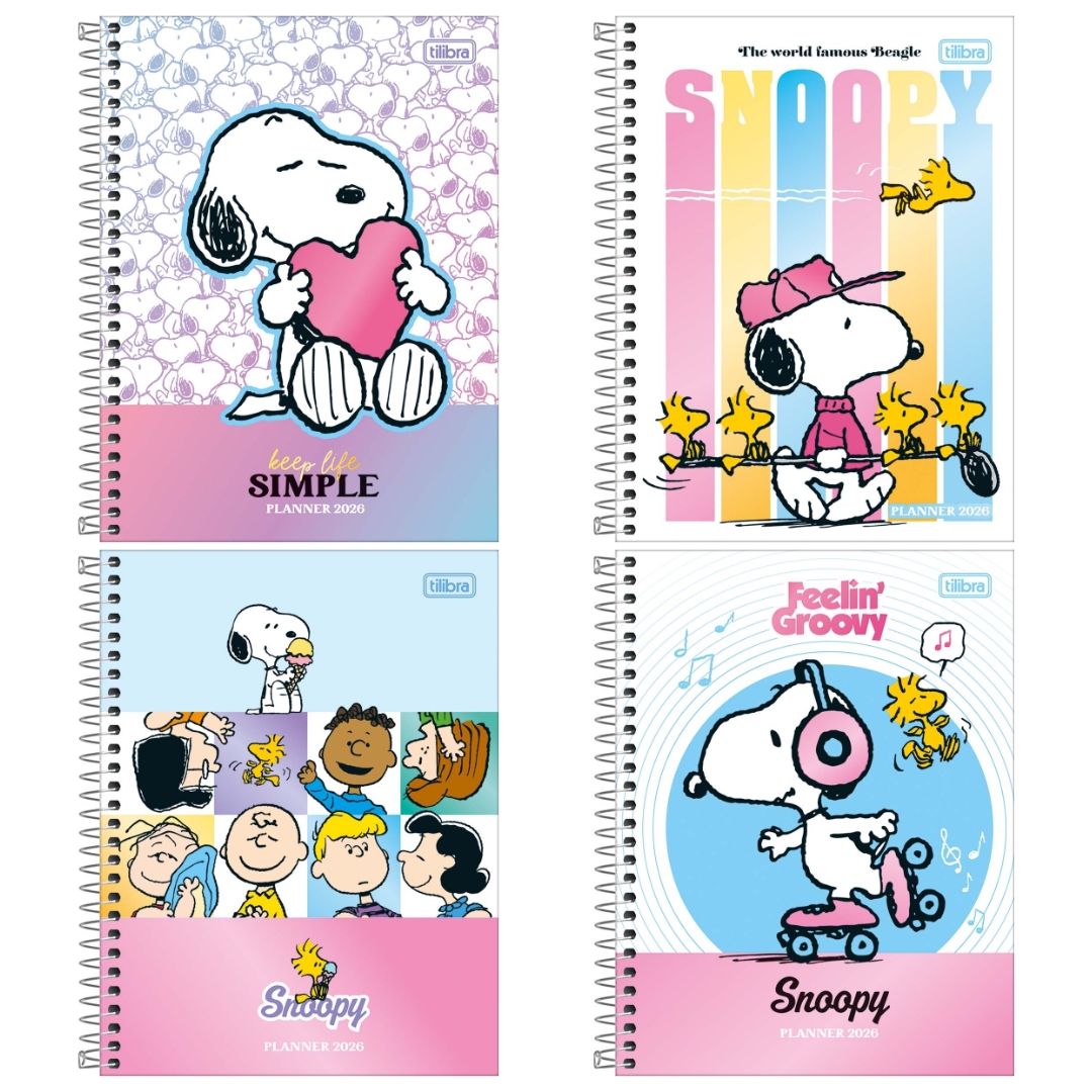 Se você busca um produto inspirado nos personagens mais queridos dos desenhos animados para se organizar, o planner espiralado Snoopy da Tilibra é a escolha perfeita. O produto tem tamanho 17,7 x 24 cm, capa dura, bolsa de papel, adesivos e folhas com visões anual, mensal e semanal. Este planner 2026, que possui 80 folhas, é escolha ideal para manter todas as tarefas e compromissos bem programados.